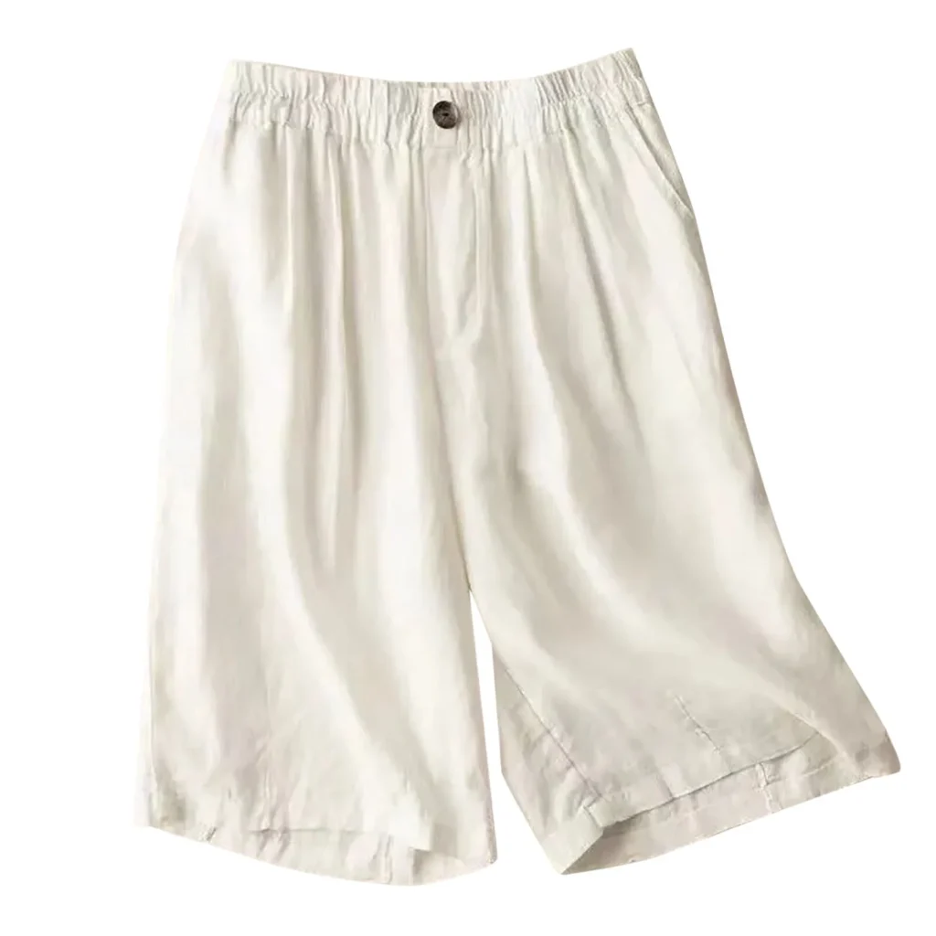 - Beach linen shorts – Lightweight and airy, ideal for vacations, seaside walks, or poolside lounging.