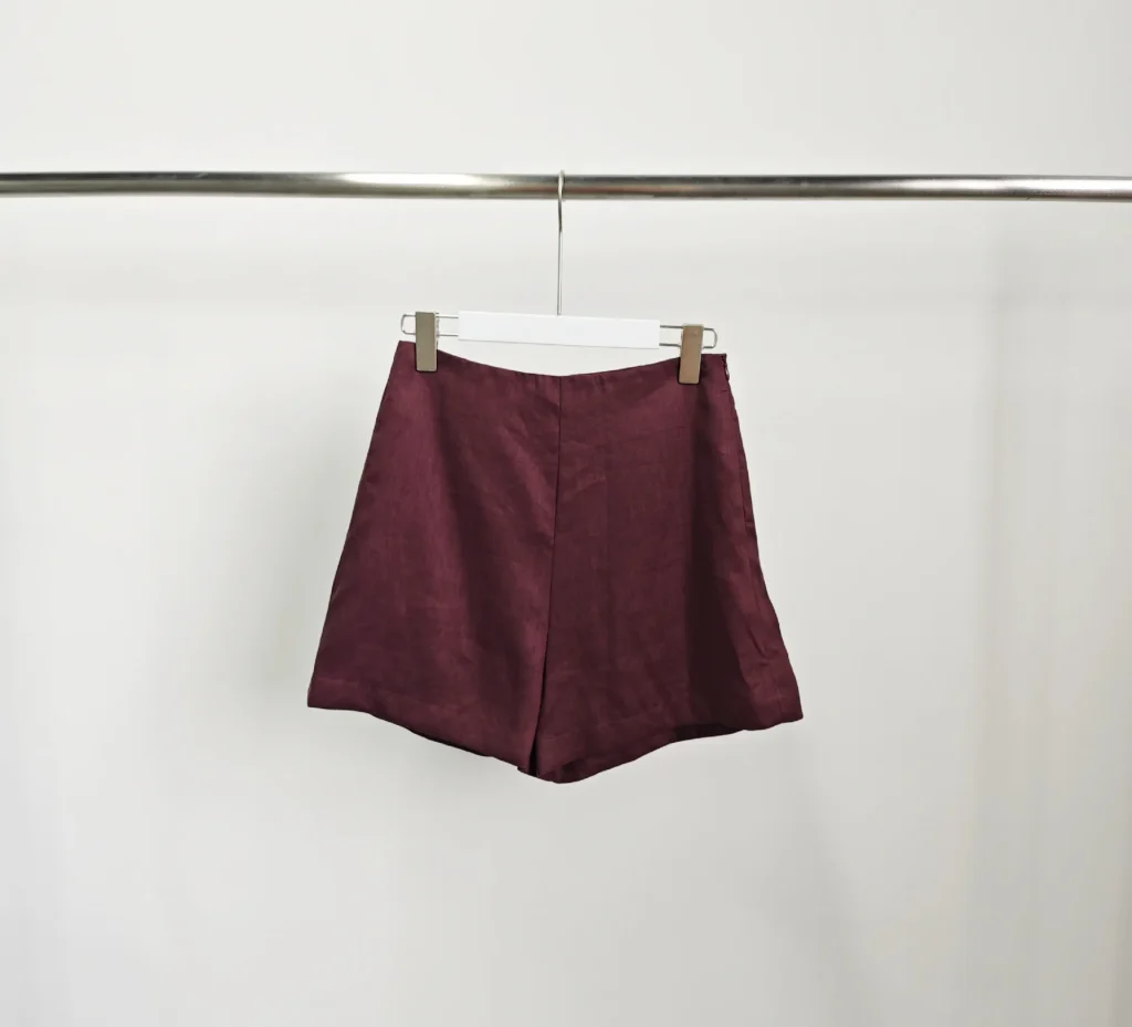 - 100% linen shorts require gentle handling: cold water washing, air drying, and occasional ironing to maintain structure and longevity.