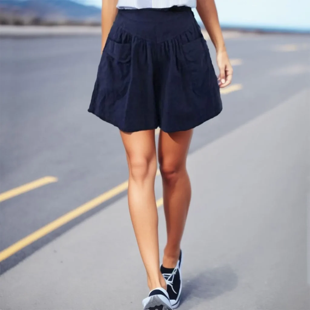 - Apple-Shaped: Loose-fitting linen shorts with an elastic waistband prevent constriction around the midsection while maintaining a streamlined silhouette. Vertical details or side seams can add subtle structure.