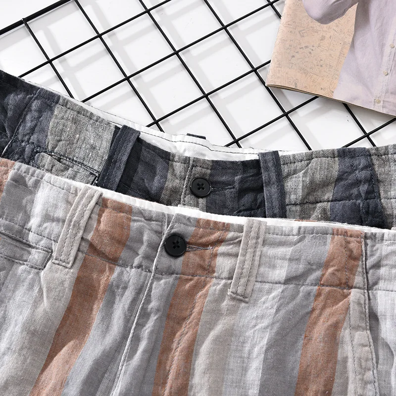 Men’s Striped Linen Shorts Summer Thin Loose Casual Beach Trendy Pants